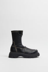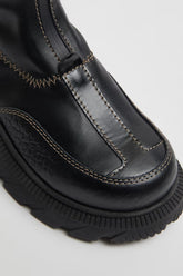 Bottines Danica noires avec surpiqûres contrastantes beiges et semelle crantée robuste.