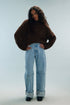 Jean baby blue taille haute coupe large avec revers et surpiqûres contrastées beiges.