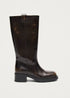 Bottes montantes style équestre en cuir marron effet vieilli.