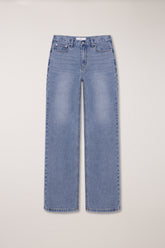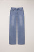 Pantalon à taille mi-haute, coupe décontractée avec jambes évasées et longueur couvrant les chaussures. Style casual et confortable.