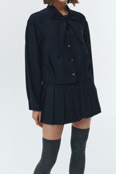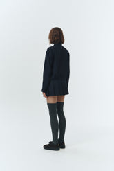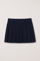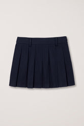 Mini jupe plissée navy à rayures tailleur.