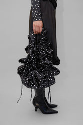 Sac Shirley en polyester recyclé noir à pois blancs avec détails volantés.