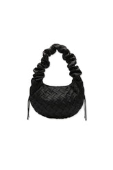 Sac Shirley en polyester recyclé noir avec design tissé et construction froncée.