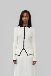Chemise Laura en coton biologique avec détails contrastés noirs, sans coutures.