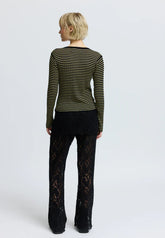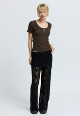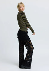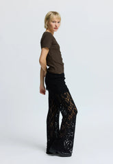 Pantalon en dentelle coupe casual ajustée avec partie jupe intégrée et taille élastiquée.