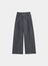 Pantalon tailleur taille haute asymétrique avec double ceinture et pinces frontales.