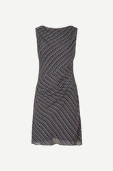 Mini-robe rayée à coupe droite avec jupe coupée en biais et effet drapé.
