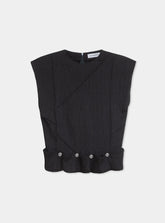 Top texturé à col légèrement montant et coupe ajustée.
