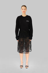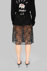 Jupe longue Alba en dentelle noire à design portefeuille.