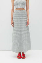Jupe longue en maille texturée à taille haute et coupe trapèze fluide.