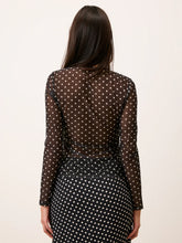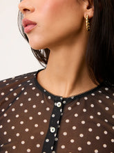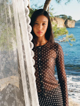 Cardigan en mesh transparent à imprimé pois.