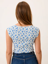 T-shirt en pointelle à imprimé fleurs bleues Cité Rose.