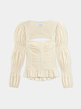 Blouse à manches longues avec détails froncés et coupe ajustée.
