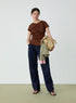 Blouse à manches courtes avec encolure arrondie et coupe regular.