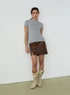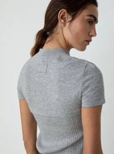 Top en maille à manches courtes avec col Mao et coupe ajustée.